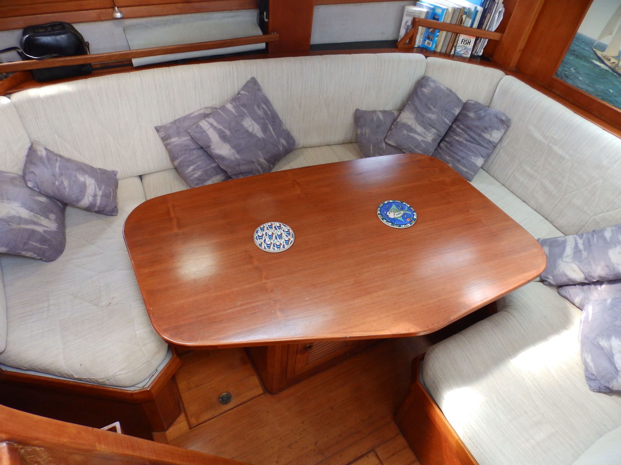 Le bateau a une coque composite qui la fait vite à la voile et elle a également été équipée d'un diesel diesel Ford Saber de 80 ch.